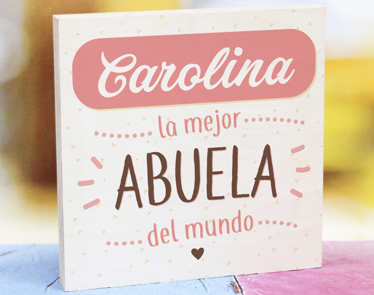 Si quieres darle una gran sorpresa a tu abuela y agradecerle lo mucho que te ha cuidado y te ha mimado, esta tabla de madera personalizada es el regalo perfecto para dejarle boquiabierta. Aprovecha su cumpleaños o las navidades para darle este detalle tan especial. Además esta tabla de madera La mejor abuela del mundo es una forma bonita y divertida de darle las gracias por todo lo que ha hecho por ti. Para personalizarlo, simplemente nos tendrás que decir el nombre de tu abuela y nosotros nos encargaremos de añadirlo en este diseño tan chulo. Seguro que esta tabla de madera se convertirá en el centro de atención del salón de tu abuela. Importante: Las maderas tienen vetas y estas quedan reflejadas en la imagen.