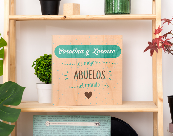 Si tus abuelos son una parte fundamental de tu vida y quieres darles una gran sorpresa, esta tabla de madera personalizada es el regalo ideal. Aprovecha sus cumpleaños, las navidades o cualquier ocasión especial para darles este precioso detalle. Además, esta tabla de madera es perfecta para darles las gracias por todo lo que han hecho por ti, por todos los mimos y todo el cariño. Seguro que les hace mucha ilusión que su nieto o nietas les haga un detalle tan especial como este. ¿No te parece una idea genial? Para personalizar esta madera, simplemente nos tendrás que decir cómo se llaman tus abuelos y nosotros nos encargaremos del resto. Estamos convencidos de que esta madera se convertirá en la pieza favorita de la casa de tus abuelos. Importante: Las maderas tienen vetas y estas quedan reflejadas en la imagen.