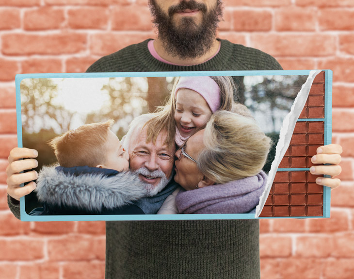 ¿Quién no ha soñado en algún momento con tener una tableta de chocolate gigante? ¡Es el sueño de cualquier persona a la que le pirre el dulce! El chocolate es un alimento que puede ser adictivo. Por eso, si nunca quieres quedarte sin reservas en casa, tenemos para ti o para esa persona especial esta tableta gigante personalizada. ¡Cuenta con 9 deliciosas tabletas de chocolate en su interior! Esta tableta gigante con 9 chocolates Nestlé con foto está pensada para ese miembro de la familia que no puede vivir sin probar una onza del chocolate al día.¡Será como una tableta gigante de chocolate de verdad! En su interior encontraras 9 deliciosas tabletas de chocolate Nestlé Dolca, cada una de ellas con una medida de 19 x 9 centímetros. ¡Nunca faltará chocolate en casa! No se nos ocurre una mejor forma de disfrutar todo este chocolate que con la presencia de toda nuestra familia. ¡Ya sea en foto o en persona! Por eso te damos la posibilidad de personalizar la tableta gigante con la imagen que quieras. ¡Incluye ese recuerdo que tanto te gusta en este regalo original para los más golosos! Una vez hayas entrado en el portal de personalización podrás incluir la foto que quieras en la plantilla de la tableta. Súbela al sistema y clica sobre ella para añadirla al diseño. ¡Solo tendrás que ajustarla como quieras y ya tendrás tu regalo más dulce! Medidas de la tableta gigante: 58x28cm. Medidas de cada tableta: 19 x 9 centímetros. Cantidad de cada tableta: 125 gramos. Número de tabletas de chocolate en su interior: 9 tabletas.