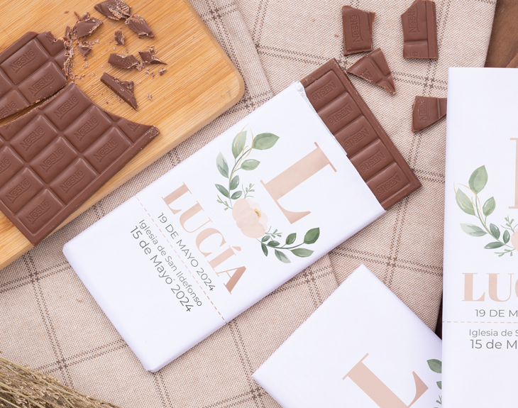 • Tableta de chocolate personalizada. • Tarjeta recordatoria.