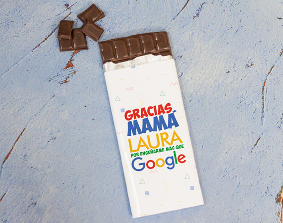 ¿A quién no le encanta el chocolate? Si tu mamá es una golosa de los pies a la cabeza este regalo tan dulce le encantará. Además, tiene un diseño súper divertido que le hará sonreír muchísimo. Una forma muy original de agradecerle todo lo que te ha enseñado. Y es que seguro que cuando tienes una duda tu madre es la primera persona a la que acudes. Al adquirir el producto (y antes de pagar) se te preguntará el nombre de tu mamá y el tipo de chocolate que quieres (con leche, blanco o negro). Chocolate negro y leche: 125 gr. Chocolate blanco: 200 gr.