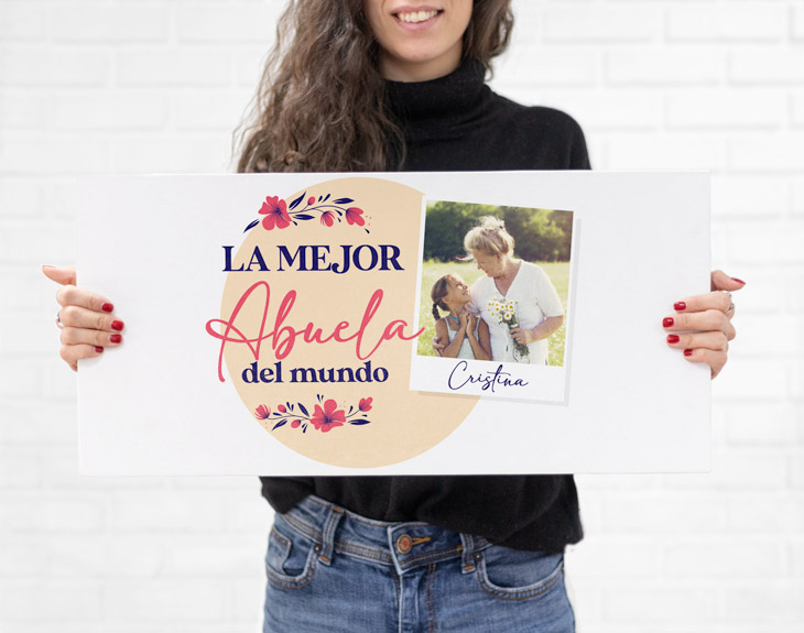 ¿Qué mejor forma de disfrutar con tu abuela de una tarde incomparable que con vuestro chocolate favorito? Si quieres sorprender a la mejor yaya del mundo de la forma más dulce y golosa posible, esta tableta gigante personalizada será el regalo más especial. ¡Esta caja está repleta de vuestros chocolates preferidos! Si tu abuela es toda una adicta al chocolate, estamos seguros de que esta tableta gigante con tabletas de chocolate con diseño para abuelas es el regalo perfecto para ella. En el interior de esta caja de 58 centímetros de longitud podréis encontrar las chocolatinas que más os gustan. ¡Podéis escoger entre nueve opciones disponibles! Jungly, Nestlé, Kinder, Kit Kat... ¿A quién no le gustaría disfrutar de estos deliciosos chocolates? Revive vuestro recuerdo más especial gracias a este regalo original para abuelas, protagonizado por un diseño de lo más colorido y una foto Polaroid. En el interior del diseñador podrás escoger el tipo de diseño que quieras para tu tableta (con texto o con foto). Después solo tendrás que personalizar cada elemento de la plantilla clicando sobre los diferentes cuadros de texto o foto. ¡Nosotros nos encargaremos de plasmarlo en la tableta! Medidas de la tableta gigante: 58 x 28 centímetros. Elige una opción de relleno: • 28 barritas de Huesitos. • 6 tabletas de Jungly. • 9 tabletas de Nestlé Dolca. • 9 tabletas de Milka, surtido: chocolate, chocolate blanco, Chips Ahoy y Oreo. • 15 paquetes de Kit Kat. • 5 tabletas de Valor, surtido. • 9 tabletas de chocolates Lindt, surtido: Figue Intense, Limón, Miel y almendras, Caramel, Mango y almond, Chilli, Sésamo y Strawberry Intense.
