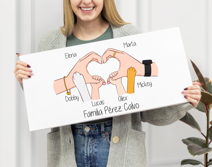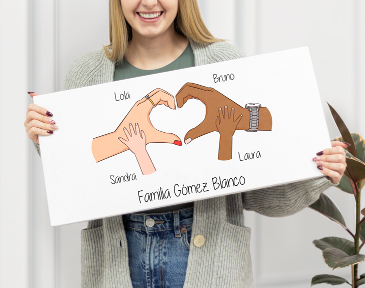 El chocolate es una de las pocas cosas que puede unir a las personas, especialmente a las familias. Seguro que algún miembro de tu familia es tan goloso como tú y le encanta disfrutar de su dulce favorito de vez en cuando y si es en compañía mejor. Por eso, si quieres sorprender a tu familia, hazlo con esta tableta gigante personalizada. Os encantará disfrutar del chocolate que más os guste todos juntos en cualquier momento. ¡No tiene precio! El interior de esta tableta está hecho especialmente para las familias más golosas y unidas, esas que comparten su chocolate favorito. Porque el chocolate no se comparte con todo el mundo. Esta original tableta contiene en su interior un montón de tabletas de vuestro chocolate favorito: Kinder, Lindt, Valor, Milka, Kit Kat... entre muchos otros. Además, cabrán perfectamente en esta caja de 58 centímetros de largo por 28 centímetros de alto. ¡Es todo un regalazo! ¿Qué es lo que le falta a este regalo para que sea único y diferente? ¡Personalizar tu propia tableta de chocolate gigante! Lo primero que tienes que hacer es elegir el relleno que más te guste y después ponerte manos la obra para crear tu diseño desde cero. Estás manos representarán a vuestra familia, por eso podrás añadir todos los detalles que necesites para que sean lo más fieles a vosotros. También, podrás escribir los nombres de todos los miembros para que aparezca en la parte inferior del diseño. Importante: Podrás crear el diseño desde cero, eligiendo todos los detalles necesarios (color de la piel, accesorios para las manos, mezclar manos con patitas de gato o perro, pintar las uñas) Medidas de la tableta gigante: 58 x 28 centímetros. Elige una opción de relleno: • 28 barritas de Huesitos. • 6 tabletas de Jungly. • 9 tabletas de Nestlé Dolca. • 9 tabletas de Milka, surtido: chocolate, chocolate blanco, Chips Ahoy y Oreo. • 15 paquetes de Kit Kat. • 5 tabletas de Valor, surtido. • 9 tabletas de chocolates Lindt, surtido: Figue Intense, Limón, Miel y almendras, Caramel, Mango y almond, Chilli, Sésamo y Strawberry Intense.