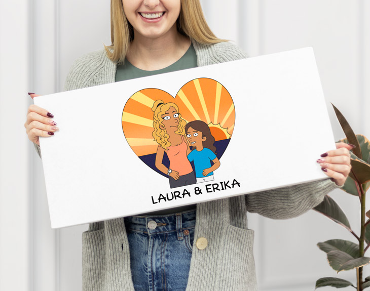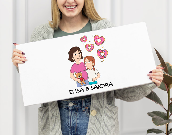 Está claro que las madres son las personas más importantes del mundo. Son las que nos apoyan, nos enseñan y nos cuidan pase lo que pase y eso se merece lo mejor del mundo. Por eso, si tu madre es la golosa de la familia y adora el chocolate por encima de todo, no habrá mejor regalo que esta tableta gigante personalizada. Su diseño, donde os podréis convertir en auténticos dibujos animados, le robará el corazoncito. ¡Le encantará este detalle! En su cumpleaños, en el Día de la Madre o en cualquier otra fecha, toca sorprender a mamá y dejar que la protagonista sea ella. Con esta original tableta gigante de chocolate dejarás sin palabras a tu madre cuando la reciba, y es que un regalo así seguro que no se lo espera para nada. Este regalo está formado por una caja de cartón que mide 58 centímetros de largo por 28 centímetros de alto y por el relleno, que será su chocolate favorito y que tendrás que elegir. Tenemos un montón de opciones diferentes según el gusto de mamá. ¡No podrá resistirse a lo que hay en su interior! Aunque lo mejor se encuentra en el interior, el diseño de su caja es ideal para sorprender a mamá. Por eso, no te olvides de personalizar esta tableta gigante. ¡Es muy sencillo de hacer! Podrás crear vuestros propios personajes desde cero, añadiendo todos los detalles necesarios para que sean iguales que vosotros. Después, elige el fondo que más te guste, hay un montón para elegir y todos son preciosos. ¡Será el mejor regalo del mundo! Medidas de la tableta gigante: 58x28 centímetros. Elige una opción de relleno: • 28 barritas de Huesitos. • 6 tabletas de Jungly. • 9 tabletas de Nestlé Dolca. • 9 tabletas de Milka, surtido: chocolate, chocolate blanco, Chips Ahoy y Oreo. • 9 paquetes de Kit Kat. • 5 tabletas de Valor, surtido. • 9 tabletas de chocolates Lindt, surtido: Figue Intense, Limón, Miel y almendras, Caramel, Mango y Almond, Chilli, Sésamo y Strawberry Intense.