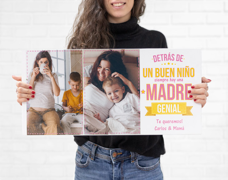 No hay nada como estar juntos mamá y tú disfrutando de ese chocolate que tanto os gusta mientras hacéis vuestro plan favorito. Sorprende a mamá con un regalo de lo más dulce y especial: ¡una tableta gigante personalizada! Pensada para las mamis más golosas del mundo a las que les encanta disfrutar de un poquito de chocolate de vez en cuando. Con esta gran tableta, nunca le faltará chocolate para ninguna ocasión. ¡Le encantará! Seguro que mamá disfruta siempre que puede de su dulce favorito. Por eso, esta original tableta conseguirá que se quede con la boca abierta. Es el regalo perfecto para sorprenderla en fechas como el Día de la Madre o su cumpleaños, donde ella es la protagonista. Lo mejor es que podrás elegir el relleno que más le guste a tu madre: Lindt, Kinder, Milka, Valor... ¡Hay para todos los gustos! Pero para hacer de este regalo el más especial, no te olvides de personalizar esta tableta gigante. Elige el relleno, añade el producto al carrito y comienza a crear tu diseño. Podrás añadir tus fotos favoritas y una breve dedicatoria en la parte inferior. ¡Esta tableta será el mejor regalo del mundo! poner las fotos que quieras y un breve texto en la parte inferior del diseño. ¡Deja volar tu imaginación y crea el regalo más dulce para mamá! Medidas de la tableta gigante: 58 x 28 centímetros. Elige una opción de relleno: • 28 barritas de Huesitos. • 6 tabletas de Jungly. • 9 tabletas de Nestlé Dolca. • 9 tabletas de Milka (surtido): chocolate, chocolate blanco, Chips Ahoy y Oreo. • 15 paquetes de Kit Kat. • 5 tabletas de Valor (surtido) • 9 tabletas de chocolates Lindt (surtido): Figue Intense, Limón, Miel y Almendras, Caramel, Mango y Almond, Chili, Sésamo y Strawberry Intense.
