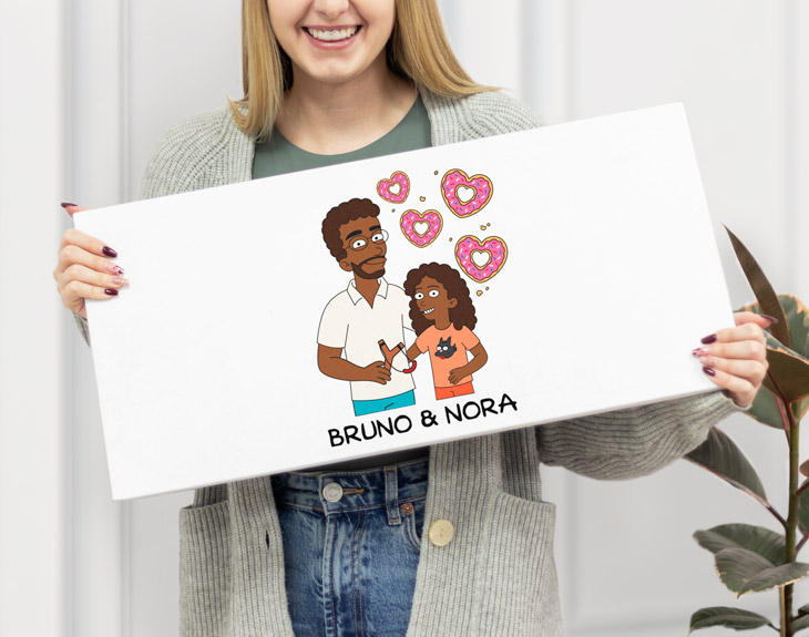 Seguro que para ti tu padre es el mejor por muchas razones: te cuida, te enseña, te apoya en todo, te hace reír, te anima, está cuando más lo necesitas... ¡Son increíbles! Por eso, si papá es el goloso de vuestra familia y no puede vivir sin su ración de chocolate diaria, el mejor regalo que le puedes hacer es esta tableta gigante personalizada. Pero no solo importa lo que está en su interior, el diseño de la caja es lo que derretirá su corazón de amor. ¡Le encantará este detalle! Hay fechas señaladas que son perfectas para sorprender a papá como el Día del Padre o su cumpleaños y con esta original tableta gigante de chocolate triunfarás seguro. Es el regalo perfecto para dejar sin palabras a papá con un regalo súper currado y especial. Rellena la caja con su chocolate favorito que podrás elegir tú mismo entre las opciones que tenemos: Huesitos, Jungly, Nestlé Dolca, Milka,, Kinder, Kit Kat, Valor o Lindt. ¡Hay para todos los gustos! Llega el mejor momento y es poder personalizar esta tableta gigante con un diseño que irá impreso en la caja de cartón que mide 58 centímetros de largo por 28 centímetros de alto. Por eso, antes de poder disfrutar de este delicioso regalo, primero tendrás que diseñar vuestros propios personajes para ser unos dibujos animados monísimos y chulísimos. Podrás añadir todos los detalles que quieras para ser igualitos y listo. ¡Papá se merece el regalo más dulce del mundo! Medidas de la tableta gigante: 58x28 centímetros. Elige una opción de relleno: • 28 barritas de Huesitos. • 6 tabletas de Jungly. • 9 tabletas de Nestlé Dolca. • 9 tabletas de Milka, surtido: chocolate, chocolate blanco, Chips Ahoy y Oreo. • 15 paquetes de Kit Kat. • 5 tabletas de Valor, surtido. • 9 tabletas de chocolates Lindt, surtido: Figue Intense, Limón, Miel y almendras, Caramel, Mango y Almond, Chilli, Sésamo y Strawberry Intense.