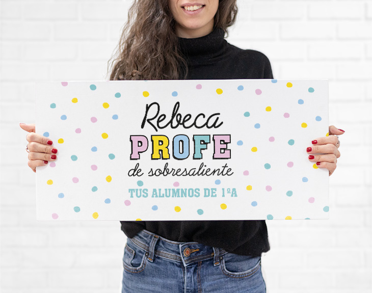 Seguro que durante este curso has estudiado un montón para aprobar todas las asignaturas y sacar muy buenas notas. Pero quien realmente se merece un sobresaliente este curso es... ¡tu profe! Por enseñar de la mejor manera posible su asignatura, por tener toda la paciencia del mundo con sus alumnos y por ser todo un referente, se merece el regalo más dulce del mundo, nuestra tableta gigante personalizada. Por dentro rellena con su chocolate favorito y por fuera con un precioso diseño que le recordará que es un profe sobresaliente para toda su clase. ¡Le encantará! Sorprender a tu profe el último día de curso es muy fácil. Esta original tableta será el regalo perfecto para agradecerle todo su esfuerzo durante este curso, que seguro que ha sido muy grande. Esta súper tableta está formada por una caja de cartón de 58 x 28 centímetros y en su interior, el relleno favorito de vuestro profe. Kinder, Valor, Lindt, Huesitos, Jungly... ¡Hay para todos los gustos! Ya sabemos que lo mejor está en el interior, pero lo que de verdad llama la atención es su exterior. Personalizar esta tableta gigante para tu profe es muy sencillo. Elige el relleno que quieres y añade el producto al carrito. Entra en el área de personalización, escribe el nombre de tu profe y una breve frase en los espacios vacíos y listo. ¡Tu profe tendrá la mejor tableta del mundo! Medidas de la tableta gigante: 58 x 28 centímetros. Elige una opción de relleno: • 28 barritas de Huesitos. • 6 tabletas de Jungly. • 9 tabletas de Nestlé Dolca. • 9 tabletas de Milka (surtido): chocolate, chocolate blanco, Chips Ahoy y Oreo. • 15 paquetes de Kit Kat. • 5 tabletas de Valor (surtido) • 9 tabletas de chocolates Lindt (surtido): Figue Intense, Limón, Miel y Almendras, Caramel, Mango y Almond, Chili, Sésamo y Strawberry Intense.