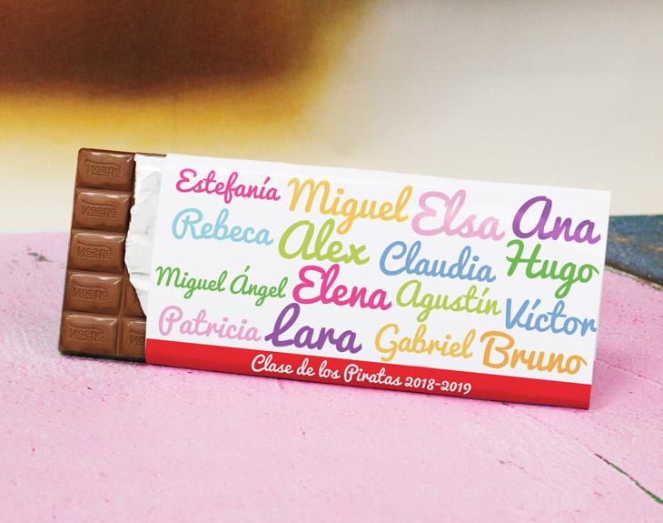 ¿Perteneces a un grupo y queréis hacerle un regalo a vuestro profe o entrenador? Esta tableta de chocolate nube de palabras es perfecta para sacarle una sonrisa y crear un momento inolvidable. Es muy sencillo. Dinos todos vuestros nombres, y a qué grupo pertenecéis (una clase de colegio, un equipo de fútbol, una clase de música o de baile) y recibirás este regalo original. El profe podrá guardarse el envoltorio para siempre. Al adquirir el producto (y antes de pagar) se te preguntará el nombre y el tipo de chocolate (con leche, blanco o negro). Chocolate negro y leche: 125 gr. Chocolate blanco: 200 gr.
