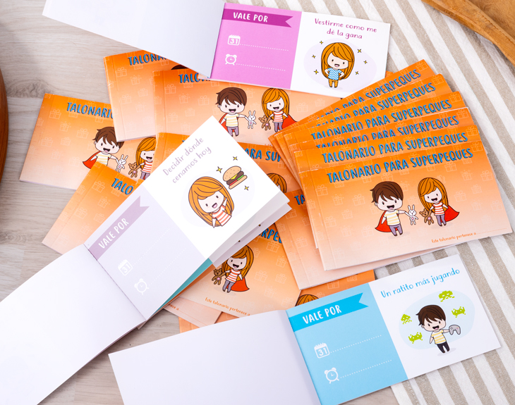 • 20 talonarios de regalos para superpeques. • Tarjeta Recordatoria. - Dimensiones: 15 x 8 centímetros
