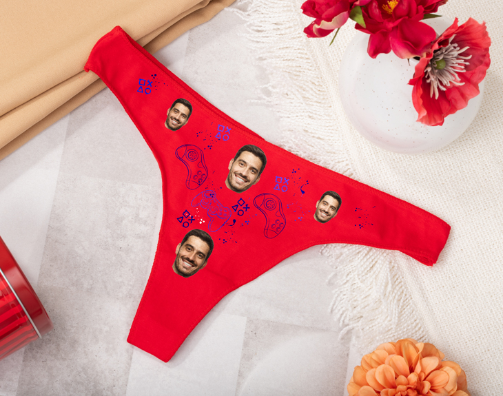 Si haces una lista de las cosas favoritas de tu vida, seguro que en las primeras posiciones está tu novia y los videojuegos, ¡del orden ya te encargas tú! Con este divertido tanga personalizado hemos querido juntar tus dos pasiones, un diseño gamer con la cara de tu pareja, ¿qué más se puede pedir? ¡Además es muy sencillo de personalizar! Solamente tienes que escoger la foto que quieras y subirla a nuestro diseñador. Con la ayuda de nuestro personalizador podrás recortarla, borrar el fondo y ajustarla todo lo que sea necesario. Una vez esté perfecta, tendrás que darle a “agregar”, automáticamente aparecerá en el diseño cuatro veces como en el ejemplo. Puedes dejarlo así o, si prefieres, añadir fotos diferentes para que sea aún más divertido. El regalo original para parejas gamers, y es que, si entre las muchísimas cosas que compartís está la afición por los videojuegos, este diseño tiene vuestro nombre. ¿No estás deseando ver cómo le queda? ¡Sabemos que te encantará! Medidas: 30 x 21,5. Talla: S, única. Material: algodón natural. Importante: Aunque de manera predeterminada aparecerá la misma foto repetida, también podrás incluir fotos diferentes. Para ello, solamente tendrás que pinchar en la que quieras cambiar y darle a “eliminar”. Te preguntaremos si quieres modificar solo esa o todas las imágenes, basta con que escojas “solo esta” y podrás subir tu nueva imagen. ¡Repite este proceso todas las veces que quieras! Te recomendamos escoger una foto de frente y de cerca, así será más sencillo adaptarlo al diseño y quedará como en el ejemplo.