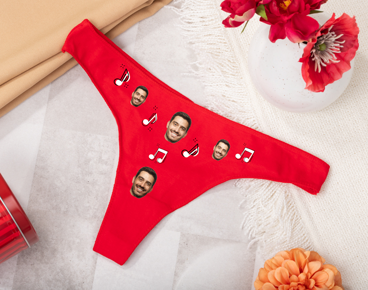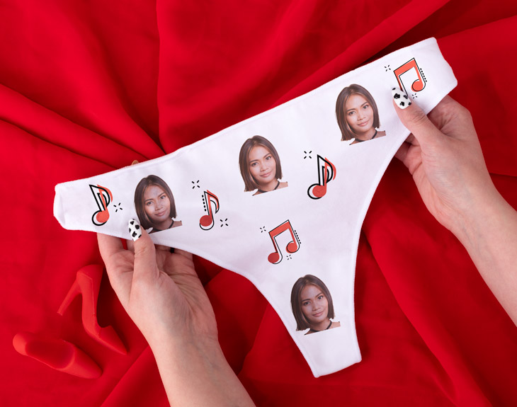 ¿La música ha cumplido un papel indispensable en vuestra relación? Entonces este tanga personalizado es el regalo original perfecto para sorprender a tu novia en cualquier momento especial. ¡Se partirá de risa al ver su cara en este tanga lleno de notas musicales! Para personalizarlo, solamente tienes que subir la foto a nuestro diseñador y ajustarla hasta que quede como más te guste. Con las herramientas de nuestro personalizador podrás recortarla y borrar el fondo si fuese necesario. Además, en todo momento verás una pre visualización del diseño para que puedas saber cómo quedará exactamente. Ya sea como regalo de aniversario, de cumpleaños o de San Valentín, toda excusa es buena para dejar a tu pareja sin palabras. Ahora solo queda poner a todo volumen vuestra canción favorita a todo volumen y disfrutar de un rato muy divertido en pareja. ¿Se te ocurre un plan mejor? Medidas: 33,5 x 21,5. Talla: S, única. Material: algodón natural. Importante: Aunque de manera predeterminada aparecerá la misma foto repetida, también podrás incluir fotos diferentes. Para ello, solamente tendrás que pinchar en la que quieras cambiar y darle a “eliminar”. Te preguntaremos si quieres modificar solo esa o todas las imágenes, basta con que escojas “solo esta” y podrás subir tu nueva imagen. ¡Repite este proceso todas las veces que quieras! Te recomendamos escoger una foto de frente y de cerca, así será más sencillo adaptarlo al diseño y quedará como en el ejemplo.