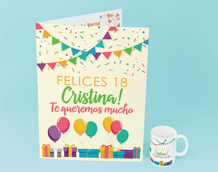 Tarjeta de felicitación gigante, la cual podrás personalizar con el texto que tú quieras. Está llena de guirnaldas, confetti y globos, por lo que es perfecta para cualquier ocasión. Puedes comprar la tarjeta personalizada solo por fuera o también por dentro. Además, tienes la opción de acompañarla con una estupenda taza personalizada. Medidas (tarjeta abierta): Tarjeta gigante: 66 x 44 cm. Tarjeta A4: 42 x 29'50 cm. Importante: a la hora de escribir el texto en el interior de la tarjeta, necesitarás darle al botón "ENTER" para crear diferentes párrafos. En el caso de escribirlo todo seguido, el texto irá todo en una línea, y el diseño saldrá tal y como le llegue a nuestro equipo de personalización.