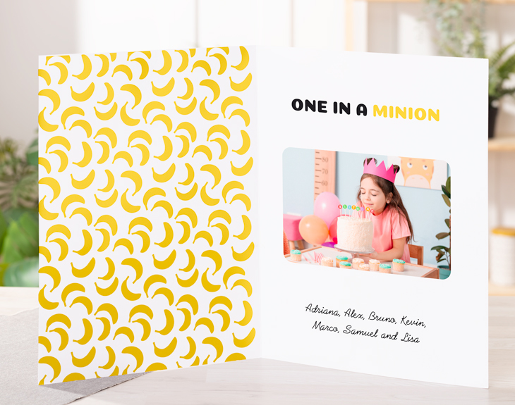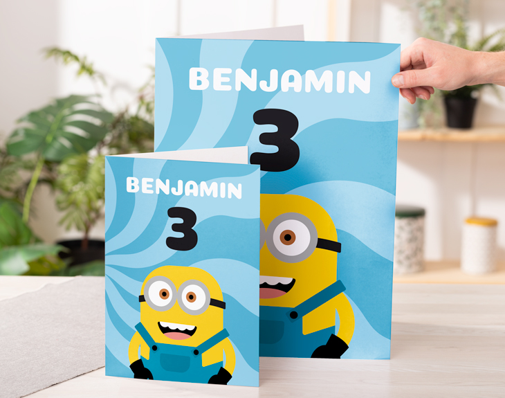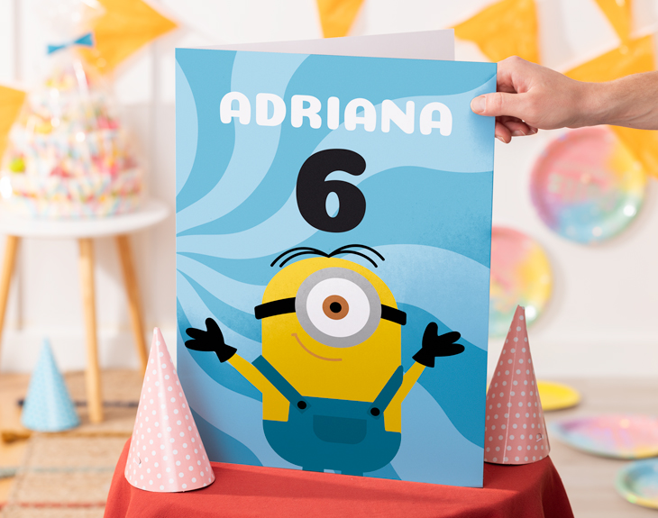 Un cumpleaños temático de tu peli favorita solo puede significar una cosa... ¡La mejor fiesta del mundo! Si te han invitado a un cumple de 'Gru, mi villano favorito' y quieres llegar con el mejor detalle del mundo, esta tarjeta personalizada es justo lo que necesitas. Y es que no existe nadie en el mundo a quien no le gusten los Minions porque son a cosa más adorable del mundo, por eso esta tarjeta inspirada en la peli es lo más. Sorprende al cumpleañero o cumpleañera con la tarjeta más original del mundo, porque si es fan de Gru y todos sus minions, se va a quedar sin palabras cuando reciba esta tarjeta y vea el diseño que tiene. Además, vas a poder elegir si quieres personalizar solo el exterior o añadir también un mensaje en su interior, para que la tarjeta quede perfecta. Y también, puedes escoger qué tamaño quieres: A4 (42 x 29'50 centímetros) o gigante (66 x 44 centímetros). ¡Hay para todos los gustos! Personalizar esta tarjeta de cumple es súper fácil. Elige la opción y añade el producto al carrito. Lo único que tienes que hacer es personalizar cada diseño con el texto que quieras, así que deja volar tu imaginación que nosotros nos encargamos del resto. ¡Será la mejor felicitación! Medidas (tarjeta abierta): Tarjeta gigante: 66 x 44 cm. Tarjeta A4: 42 x 29'50 cm. Importante: a la hora de escribir el texto en el interior de la tarjeta, necesitarás darle al botón "ENTER" para crear diferentes párrafos. En el caso de escribirlo todo seguido, el texto irá todo en una línea, y el diseño saldrá tal y como le llegue a nuestro equipo de personalización.