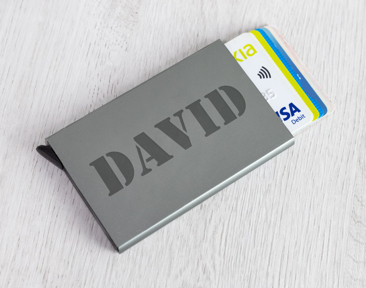 ¿Necesitas urgentemente un tarjetero? ¿Te has cansado de las carteras y los monederos? Este tarjetero personalizado es perfecto para salir de casa sin preocupación y con muchísima seguridad. Además, no tendrás que hacer un esfuerzo terrible para meter la cartera en el bolsillo del pantalón; eso se ha acabado gracias a este finísimo tarjetero. Tiene el espacio ideal para guardar hasta 7 tarjetas. ¡Así empezarás a llevar solo lo que necesitas! El funcionamiento es muy sencillo: metes las tarjetas y se quedan guardadas en el tarjetero. En el momento que quieras utilizar una, tendrás que utilizar la pequeña palanca del tarjetero que encontrarás en la parte inferior. Las tarjetas aparecerán escalonadas, para que puedas coger la que necesites en cada momento. Además de un regalo para uno mismo, es muy original para los cumpleaños de las personas que más te importan. ¡Aprovecha la ocasión! Material: aluminio Medidas: 9,5 cm x 6 cm x 1 cm