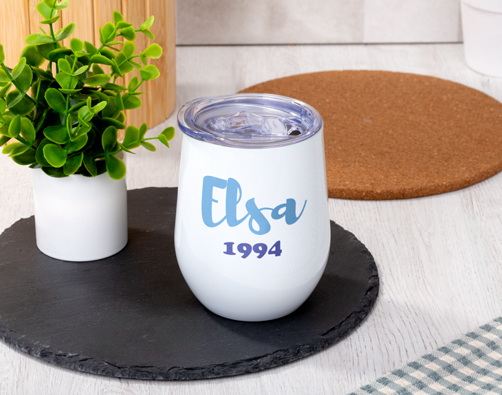 En las fiestas, solemos identificar nuestros vasos de plástico escribiendo con rotulador en la parte exterior. Pero, ¿por qué conformarte con ese diseño cuando puedes escribir todo el texto que quieras con varias tipografías y colores? Con esta taza térmica personalizada se acabaron las confusiones con las bebidas de los demás. Además, así ayudarás a contaminar menos quitando el plástico por un material reutilizable para tus bebidas como es este acero inoxidable de doble pared. ¡Ventajas para todos! Imagina que esta taza blanca personalizada con nombre a color es una pizarra en blanco. ¡Puedes escribir lo que quieras! Tú decides los cuadros de texto a añadir, en qué tamaño y posición... Todo ello quedará bien impreso a color sobre un lado de la pared blanca. Tal cual lo diseñes desde el carrito será el resultado final que sacaremos. Puedes crear tu regalo original de cumpleaños, de aniversario, de jubilación... ¡O simplemente añadir un chiste! Al ser un regalo para todo tipo de personas, este vaso ovalado personalizado se adapta perfectamente a la forma de la mano. Así podrán llevárselo cómodamente al campo de excursión o tenerlo en casa y la oficina para beber a diario. Altura: 12 centímetros. Base: 5,5 centímetros. Borde: 8 centímetros. Capacidad: 360 mililitros. Material: acero inoxidable. Color: blanco. Medidas de la tapa: 7,5 x 8 centímetros. Material de la tapa: plástico reforzado, cerrado a presión. Incluye doble pared. Importante: incluye tapa transparente con boquilla.