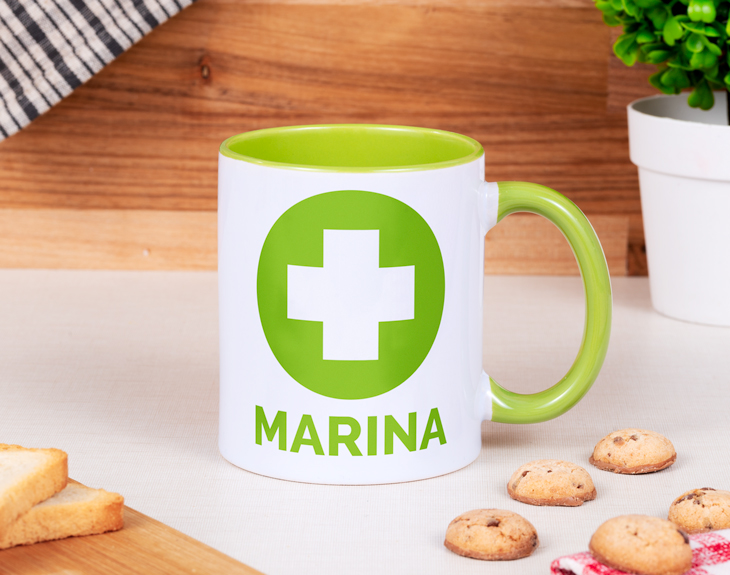 ¿Eres profesional de la salud y quieres darte un pequeño homenaje? Esta taza personalizada es perfecta para ti. Con un diseño sencillo pero lleno de significado, incluye el símbolo universal de la medicina: una cruz blanca que representa cuidado, protección y compromiso con la vida. Y si lo que buscas es un detalle para alguien especial, esta taza es ideal como regalo para doctores, enfermeras, farmacéuticos o técnicos sanitarios, para todos esos héroes sin capa que dedican su día a cuidar de los demás. Perfecta para disfrutar de un café o té en el hospital, la clínica o en casa, siempre recordando la importancia de su vocación. Tenemos varios diseños en colores preciosos para que elijas el que más te guste, y lo mejor: puedes combinarlo con el tipo de taza que prefieras. Desde las clásicas tazas de cerámica, hasta las mágicas que revelan el diseño con el calor, la taza con interior de color o incluso una taza con asa en forma de corazón. Debajo del diseño podrás añadir el nombre de la persona, o si quieres ser más original, el del hospital o clínica que desees. Personalizarla es muy sencillo, selecciona el modelo de taza que quieras, elige el diseño y escribe el nombre o texto corto que desees y listo tendrás una taza genial, pensada especialmente para el personal sanitario, que se merece un buen cafecito o tecito, calentito o frío, según su gusto.