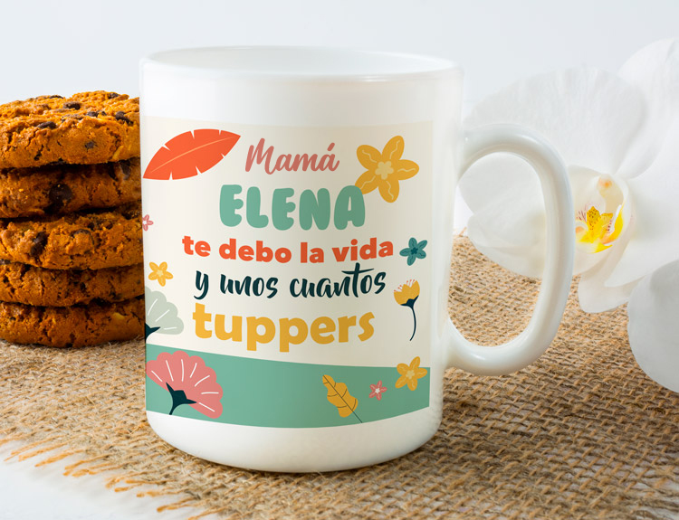 ¿Qué haríamos sin nuestras madres? Son los seres que más nos quieren, se han preocupado para que creciéramos con todos los lujos a su alcance y, hasta de mayores, nos siguen cuidando. Si tú madre es un sol y se merece lo mejor del mundo, es hora de que se lo demuestras con un regalo tan original como nuestra taza personalizada Te debo la vida y tuppers. Con esta preciosa taza, podrá disfrutar de su desayuno cada mañana y, al mismo tiempo, acordarse de ti. Y es que, aunque te independices, sigues necesitándola casi tanto como antes, ¿cómo podríamos sobrevivir sin sus deliciosos tupper con comida casera? Solo tienes que decirnos su nombre y diseñaremos esta divertida taza con la que decirle a tu madre lo importante que es para ti. Si buscas un regalo original y único con el que sorprenderla en el próximo Día de la Madre, esta taza es una opción perfecta y apta para todo tipo de presupuestos. Le encantará tener una taza personalizada con su nombre, ¡especialmente cuando el mensaje está cargado de amor y humor! Una forma excelente de decirle lo importantísima que sigue siendo para ti.