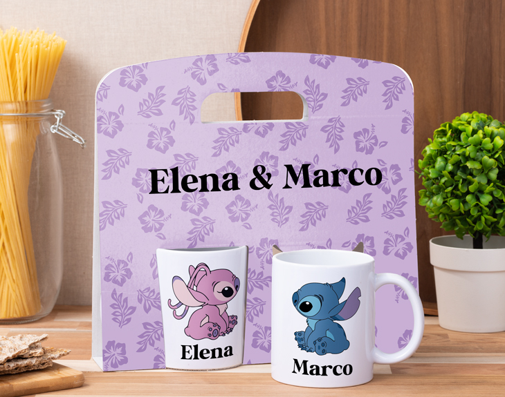 Este 14 de febrero es el momento ideal para sorprender a tu pareja con un detalle tierno y original. Prepara un delicioso desayuno en estas tazas románticas con estuche personalizado con diseño "Pareja Stitch". El regalo perfecto para el Día de los Enamorados, que dejará a tu otra mitad sin palabras. ¡Disfrutaréis de un café mañanero lleno de amor con esta adorable pareja de criaturas! Además de su diseño adorable, lo mejor de estas originales tazas es que son personalizables. Podrás escribir el nombre que tú quieras. ¡Quedará genial! Y, por si fuera poco, vienen acompañadas de un estuche personalizado con un estampado ideal para los fans de Stitch y Ángel. ¡Será el regalo perfecto para San Valentín! Personalizar esta taza con estuche es muy sencillo. El primer paso a seguir consiste en añadir el producto al carrito y entrar al área de personalización. Una vez ahí, ya puedes escribir el nombre que tú quieras. Pronto estará perfecta y lista para regalar. ¡El detalle ideal para parejas! Medidas del estuche individual: 25,5 cm x 15 cm. Medidas del estuche doble: 26,5 cm x 25,5 cm.