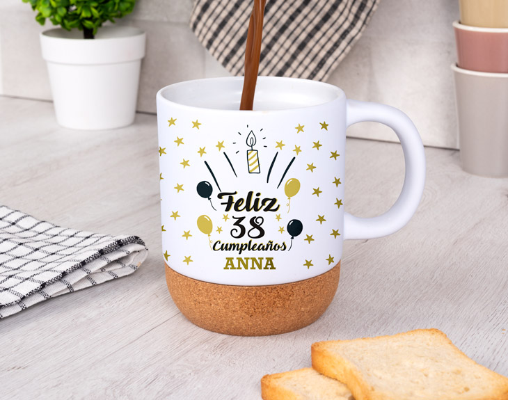 • Taza con corcho personalizada • Tarjeta recordatoria