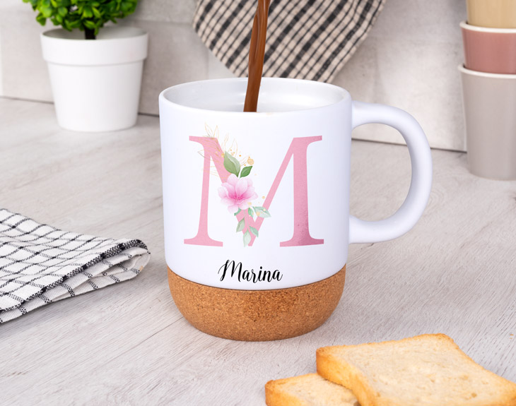 No hay nada como despertarse por la mañana y poder tomarte tu bebida favorita acompañada de un buen desayuno, ¿verdad? Todos necesitamos esa bebida que nos haga reunir la energía suficiente para afrontar un nuevo día. Porque cada día es diferente y pueden ocurrir muchas cosas. Por eso, si eres de café, te o colacao, no te preocupes porque tenemos esta taza personalizada con corcho que es el producto que no te puede faltar. Además, el diseño de esta taza es perfecto para las personas más elegantes y minimalistas, su toque floral hace que sea muy especial. Esta taza es toda una sorpresa y está pensada para todo el mundo. Las que desayunan fuera de casa y quieren llevar su café siempre encima y bien calentito, las que desayunan en su terraza o jardín y quieren su bebida siempre a punto o las que desayunan tranquilamente en casa. Esta original y práctica taza sorprenderá a cualquier persona y no querrá dejar de utilizarla porque es súper útil. ¡Es la taza perfecta! La taza es de cerámica mate, lo que la convierte en una taza súper elegante y bonita para todos los días de la semana. Y además, la base es de corcho. ¡Lo tiene todo! Y por si esto fuera poco, podrás personalizar a medida tu taza. Solo tendrás que escribir tu nombre, y nosotros nos encargamos del resto. Tendrás una taza con tu nombre e inicial y un toque floral precioso. Medidas: 11x9 cm Capacidad: 420 ml