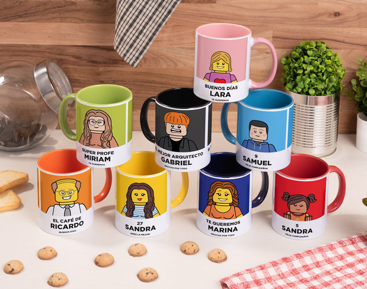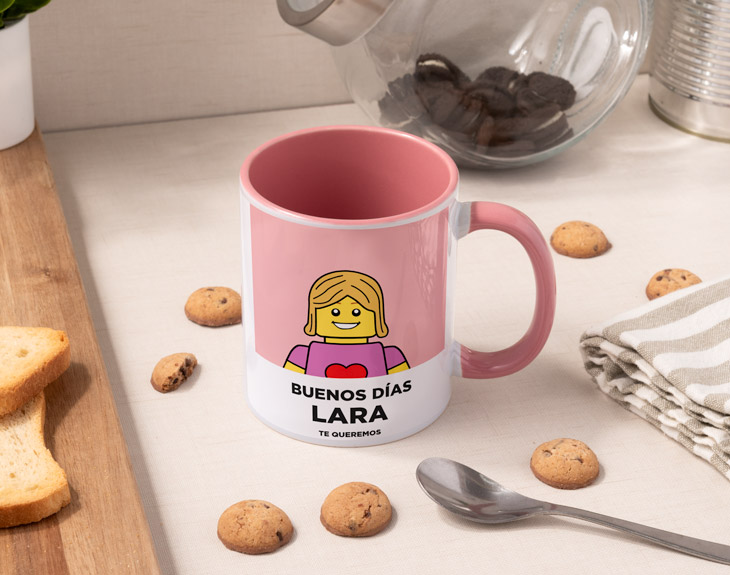 Si eres un fan absoluto de los míticos Legos y eres de los que piensa que un buen día empieza con un buen desayuno, esta taza personalizada con el interior de color será la mejor opción para darlo todo con la llegada de la mañana. ¡Una taza blanca con interior del color que quieras y un collage Lego de lo más único! ¿A qué persona no le hace un poco más feliz disfrutar de un café en su taza favorita? Esta taza con diseño de collage Lego podrá incluir tu color favorito en este diseño tan exclusivo y cuqui. Disfrutarás de tu bebida favorita en una taza hecha de cerámica, con una capacidad de 33 centilitros. ¿Lo mejor de todo? ¡Podrá ir personalizada con tu propio personaje Lego? Puede que siempre hayas querido ver cómo serías en versión Lego. ¡Con este regalo original lo verás todos los días! A la hora de pedir una taza como esta solo tendrás que añadir el número de tazas que quieras al carrito. Una vez en el área de personalización tendrás que elegir el color para la taza (que será el mismo color que para el fondo del collage), los textos que quieres para la parte inferior y, finalmente, diseñar tu propio personaje Lego. ¡Añádele todas esas características que te convierten en una persona única! Importante: el tono de los colores puede variar según stock. Importante: solo puede haber 1 personaje Lego. Capacidad: 33 centilitros. Material: cerámica.