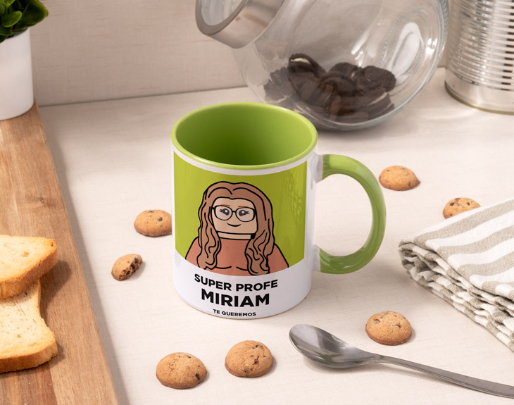 • Taza con interior de color personalizada en cajita individual. • Tarjeta recordatoria.