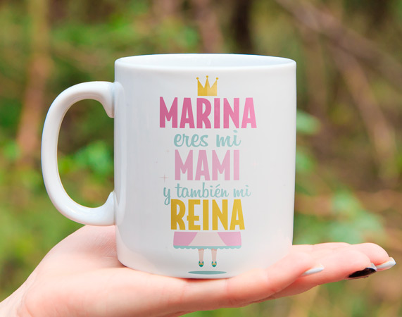 ¿Quién no ha sentido nunca admiración hacia su mami en algún momento de la vida? Si a ti también te ha pasado, esta taza personalizada está diseñada para que se la regales el Día de la Madre, en su cumpleaños o en cualquier momento que te apetezca darle un achuchón y decirle que le quieres muchísimo. Es una taza pensada para las madres e hijos que son inseparables, para aquellos hijos que piensan que, además de mamá, tienen una Reina en casa, que les cuida y aconseja en cada momento. Dinos su nombre y tendrás la taza perfecta para emocionar a tu madre.
