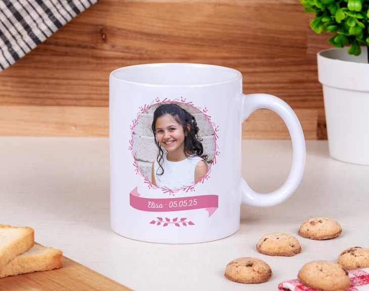 Si estás buscando regalo para los invitados de la Comunión de tu hija, esta taza personalizada puede ser un detalle muy original y fácil de recordar para todos. Solo tienes que decirnos el nombre de la niña, un texto inferior (la fecha de la Comunión, por ejemplo) y elegir una foto súper mona para que podamos personalizar la taza. Es un regalo original y práctico a su vez, pues todos los invitados podrán desayunar cada mañana con el recuerdo de aquel día tan maravilloso. ¡Empieza a contar cuántos sois en la Comunión!