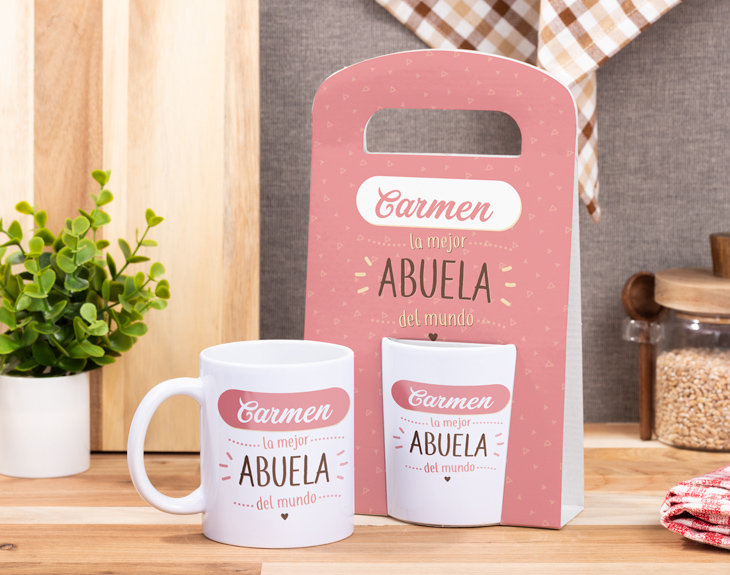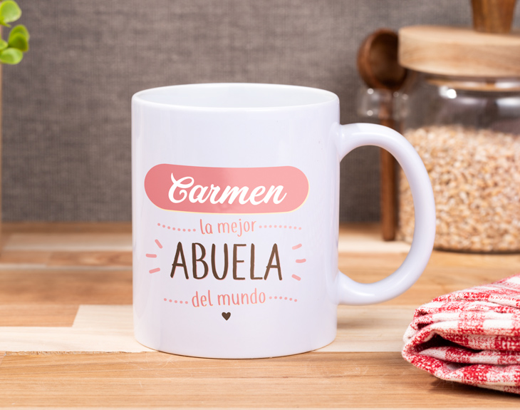 Una taza personalizada para la mejor abuela del mundo. La reina de la casa se merece este regalo original por sacarte una sonrisa siempre que lo necesitas, por llevarte de pequeña al parque y a comer helados, por esas propinas que te daba en secreto, y por muchas otras historias y gestos con los que has crecido. ¿Quieres decirle a tu abuela que es la mejor y que le quieres muchísimo? Aquí tienes la oportunidad de oro. Regálale esta taza para que desayune todos los días y le recuerdes cada mañana que ella sí que vale y que es la mejor.