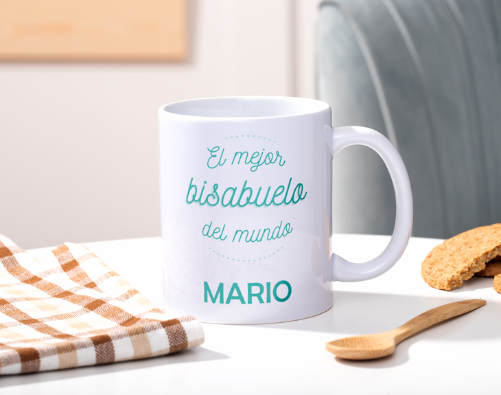 Si durante el Día del Padre les hacemos regalos a los papás y abuelos, ¿por qué no sorprender también a los bisabuelos? Y es que no nos podemos olvidar que ellos han sido y son padres, por eso se merecen un reconocimiento por todo lo que han hecho siempre por su familia. Y no hay mejor manera de sorprenderles que con su propia taza personalizada con un mensaje de lo más especial y único. ¡Le encantará! Cualquier ocasión es perfecta para regalar esta original taza: su cumpleaños, el Día del Padre, Navidad... Siempre es bonito decirle y recordarle que es el mejor bisabuelo del mundo, así cada mañana al utilizar esta taza, no se olvidará de este bonito mensaje. Y espera, proque vas a poder elegir qué tipo de taza quieres entre todos los modelos que tenemos disponibles, par que este regalo sea personalizaco al completo. ¡Hay para todos los gustos! Personalizar esta taza es muy sencillo además de rápido. Elige la taza, añádela al carrito y entra en el área de personalización. En este apartado podrás ver el diseño, al cual tendrás que añadirle el nombre de tu bisabuelo. Escríbelo y colócalo a tu gusto y ya estará listo. ¡Será el mejor regalo del mundo! Además, puedes elegir entre varios tipos de tazas: cerámica, mágica, con el interior de color, con cuchara o con un asa en forma de corazón.