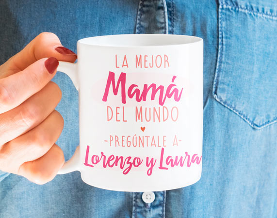 La taza personalizada que todo el mundo está buscando para hacerle feliz a la mejor mamá del mundo, aunque sea en el Día de la Madre. Intentar que tu mamá sonría cada día es una tarea muy tierna y bonita, por ello, hemos diseñado esta taza para que puedas personalizarla con tu nombre y el de tus hermanos, si tienes, y hacerle sentir orgullosa a tu madre todas las mañanas.