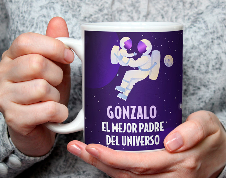 Todo el mundo dice que tiene el mejor padre del mundo, pero seamos sinceros, eso es porque no han conocido al tuyo. Si tienes la suerte de tener como padre a la persona más buena, luchadora, compresiva y cariñosa que existe, esta taza personalizada tiene su nombre. Y es que, decir que es el mejor padre del mundo se queda corto...¡Es el mejor papá del universo! Por eso, se merece un detalle así con el que se sienta realmente querido y valorado. Una bonita manera de devolverle un poquito de todo lo que él te da día a día. Solamente tienes que decirnos su nombre para que podamos insertarlo en el diseño y así podrá comenzar sus mañanas de la mejor manera posible...¡Recordando lo muchísimo que le quiere su familia!