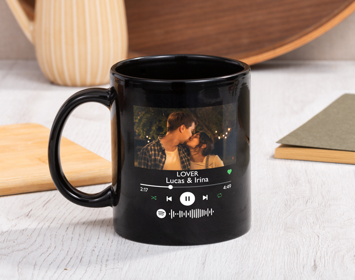 Las canciones tienen el poder de traernos buenos momentos, recordarnos a personas y viejos tiempos. Si tu pareja y tú tenéis esa canción que siempre que la escucháis os ponéis a bailar o que expresa exactamente lo que sentís el uno por el otro... ¡Tenemos el mejor regalo de todos! Nuestra taza de color negro personalizada "Spotify" es ideal para vosotros. ¡Gracias a esta taza, conseguirás que sonría desde primera hora de la mañana! Y es que es perfecta para que pueda disfrutar de su bebida favorita a la hora del desayuno. Además, lo mejor es que se puede personalizar con el código de esa canción de Spotify tan especial, y con vuestra foto favorita. ¡Quedará genial! Es un regalo idóneo para vuestro aniversario, un cumpleaños o para San Valentín. Personalizar esta taza negra es muy sencillo. El primer paso a seguir consiste en añadir el producto al carrito y entrar al área de personalización. Una vez ahí, ya puedes escribir el nombre de esa persona tan especial. Pronto estará perfecto y listo para regalar. ¡Será un original regalo! ¿Cómo se personalizan los productos Spotify? A la hora de personalizar tus productos relacionados con Spotify, tendrás que contestar a una serie de preguntas. De esta manera… ¡tendrás un regalo original de lo más musical! Cuando llegues al diseñador te encontrarás con la plantilla del producto, con tres apartados a personalizar (texto, foto y código Spotify). Para personalizar cada uno sólo tendrás que hacer click encima de cada cuadrado de personalización. Una vez dado, solo tendrás que escribir el texto y subir la fotografía a nuestro servidor. ¡Podrás modificar el color del texto o su lugar en el diseño! En el momento de añadir esa canción tan característica, no tendrás ningún problema. Escribe la canción o el artista que quieras en el buscador del código Spotify, y a partir de ahí aparecerán una serie de resultados. Solo tendrás que pinchar sobre la canción... ¡no tendrás que hacer nada más! Dependiendo del producto, podrás modificar las características del código: color, fondo o lugar. ¿Cómo se escanea el código? Para poder descubrir de qué canción se trata tendrás que abrir la aplicación de Spotify en tu teléfono móvil y darle al apartado "Buscar". En la parte superior encontrarás un buscador, cuando pulses sobre él verás que en la esquina derecha aparece un icono de una cámara. Al pinchar te abrirá la cámara, únicamente tienes que apuntar al código y automáticamente se reproducirá tu canción.
