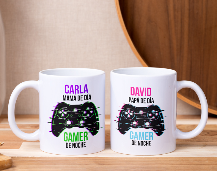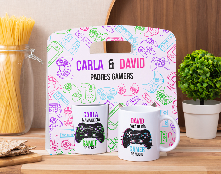 No todo el mundo tiene la suerte de tener unos padres que entienda, y lo más importante, compartan tu afición por los videojuegos. Por eso, si tus padres son los mejores rivales que podías haber encontrado, estas tazas personalizadas con estuche tienen sus nombres. ¡Así podrán desayunar cada día con una sonrisa de oreja a oreja! Y es que, si no puedes sentir más suerte y orgullo de tener a los mejores padres del mundo, es el momento de demostrárselo de la manera más original. Solo tienes que decirnos sus nombres para que podamos añadirlos al diseño y conseguir que las tazas sean totalmente personales. ¡Ahora no querrán usar otras! Fornite, Minecraft, FIFA o GTA...¡Da igual a lo que juguéis que siempre ganan ellos!