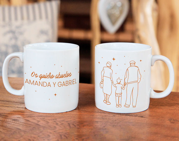 Los abuelos deberían durar para siempre y estar a nuestro lado en todo momento. Se merecen lo mejor de parte de su familia por estar siempre al pie del cañón, ayudando y cuidando de sus nietos cuando ha sido necesario. Por eso, si quieres dejarles sin palabras y sorprenderles con el mejor regalo del mundo, esta taza personalizada es perfecta. Con ella triunfarás seguro y alegrarás a tus abuelos todas las mañanas. ¡Les encantará beber en esta taza tan especial! No hay figura que represente más amor que unos abuelos. No hay sentimiento más puro y bonito que el cariño entre nietos y abuelos. Aprovecha fechas especiales como el Día de la Madre o el Padre, cumpleaños o cualquier celebración para regalarles esta original taza. Hecha de cerámica y con una capacidad de 33 centilitros, se convertirá en su taza favorita para utilizarla todos los días. Además, les servirá para acordarse siempre de sus nietos. ¡No tiene precio! Toca personalizar esta taza para tus abuelos. Elige cuántas tazas quieres, añade el producto al carrito, entra en el apartado de personalización y comienza a crear tu diseño. Lo único que tienes que hacer es elegir qué modelo quieres (con niño o niña) y escribir lo que quieras en los espacios vacíos. Puedes inspirarte en nuestra imagen o dejar volar tu imaginación. ¡Hazles el mejor regalo del mundo!