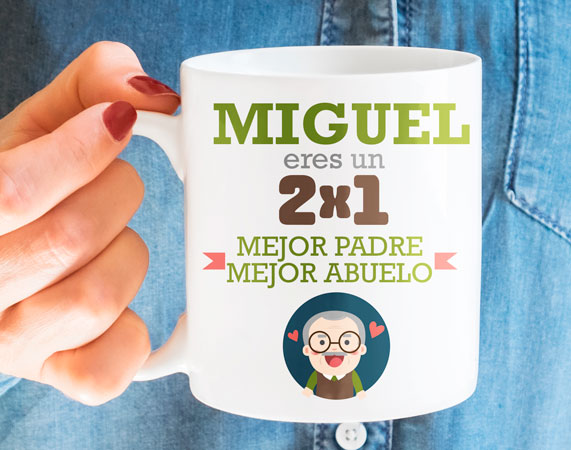 Si para ti un padre perfecto es aquel que te ha dado la mejor educación que ha podido y que se comporta con sus nietos de una manera ejemplar, esta taza personalizada es perfecta darle una sorpresa en el Día del Padre, su cumpleaños o en un momento insospechado. ¿Cuántas veces le has dicho "te quiero" a tu padre cuando ya eras mayor? Muy pocas, ¿verdad? Todavía tienes la oportunidad de sorprenderle con un bonito diseño y unas palabras conmovedoras. Dinos su nombre y personalizaremos este regalo original para que puedas sorprender a tu padre y abuelo de tus hijos.