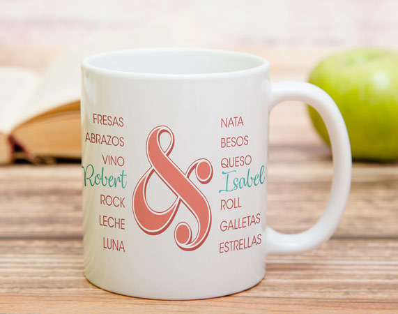 Ni la leche con galletas, ni los besos y los abrazos, ni las fresas con nata hacen tan buena pareja como vosotros dos. Si tú también lo piensas, prepárate para el espectáculo de esta taza personalizada. Dinos los dos nombres y los colocaremos reinando en el mundo de las parejas perfectas. Es un regalo romántico perfecto para sorprender a tu pareja en San Valentín o en vuestro aniversario. ¡Le encantará! Utilízala para desayunar todos los días y empezar el día con buen pie y una enorme sonrisa.