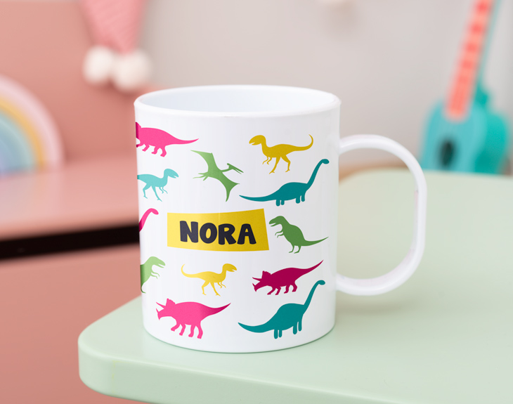 ¿Le encanta todo lo relacionado con los dinosaurios? Si todos sus juguetes son Tiranosaurios y Diplodocus, esta taza personalizada le dejará sin palabras. A partir de ahora podrá desayunar cada mañana sintiéndose como en la mismísima Prehistoria. ¡Será genial! Lo mejor de todo es que puedes personalizar el diseño con su nombre, la fecha de su cumpleaños o ese mote cariñoso con el que siempre le llamáis. Estamos seguros que a partir de ahora no querrá utilizar otra taza que no sea esta. ¡Así se comienza el día de una manera mucho más divertida! También es una idea fantástica para su vuelta al cole, y es que, si cada uno tiene que llevar su propio vaso o taza, esta opción es perfecta. Seguro que está deseando que llegue el primer día de clase para poder enseñar su taza nueva a todos sus amigos. ¡Todo el mundo querrá una igual! Importante: El plástico de la taza no contiene BPA. Esta taza es apta para lavavajillas y microondas.