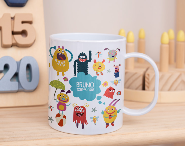 taza de plástico Monstruitos personalizada, ya que creemos que, con una taza tan divertida y única como esta, los peques estarán encantados de usarla.