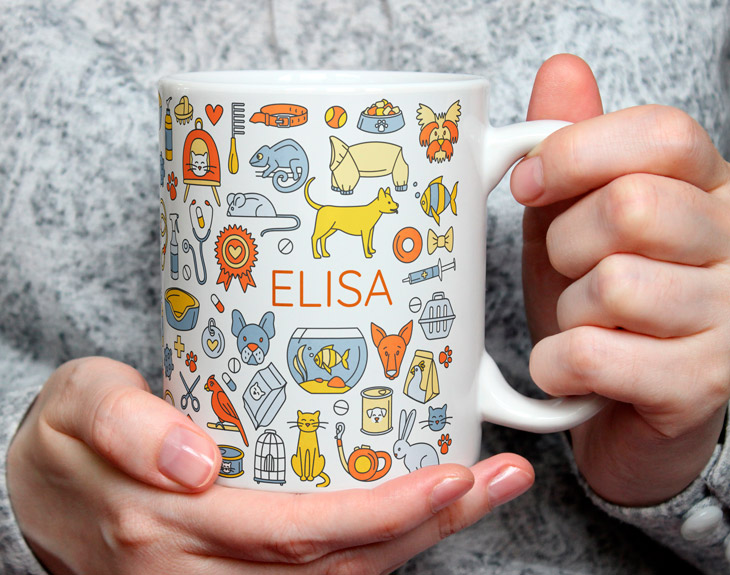 Poder llevar a tu mascota a un veterinario de confianza es muy tranquilizador. Es muy importante que estos profesionales tengan buena actitud y sientan mucho amor por su trabajo. Así que, si estás muy satisfecho con este profesional que cuida de tu mascota, es hora de agradecérselo con nuestra taza profesiones "Veterinario/a". Esta taza puede ser un regalo súper original para ese estudiante de veterinaria o para animar a ese profesional durante sus jornadas laborales. Tiene un estampado muy especial inspirado en el mundo de esta profesión tan bonita. Además, esta taza personalizada es genial para que disfruten de sus cafés mañaneros, ¡Conseguirás que sonría desde primera hora de la mañana! Sorprende a ese veterinario/a tan especial con este regalo tan original. Personalizar esta taza es súper sencillo el primer paso a seguir consiste en añadir el producto al carrito y entrar al área de personalización. Una vez ahí, solo tienes que escribir su nombre y todo lo demás es cosa nuestra. ¡Pronto estará lista para regalar! Al comprar este diseño podrás elegir el tipo de taza que quieres entre nuestras seis opciones disponibles en el desplegable: cerámica, mágica, plástico, con el interior en color, con cuchara o con asa en forma de corazón. En el lado derecho encontrarás la guía de tazas con las características de cada una de ellas. ¡Escoge el estilo y la cantidad de tazas que quieras!