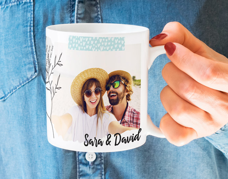 ¡Estar enamorado es una maravilla! No hay nada en esta vida como vivir un amor verdadero, una de esas relaciones que recuerdas toda la vida, que te alegra cada instante de tu existencia. Si tienes uno de estos intensos romances, solo podemos darte la enhorabuena: eres todo un afortunado. Y es que, ¿a quién no le gustaría compartir cada segundo del día con su esa persona que tanto ama? El amor hace que no podamos separarnos de nuestra pareja, y nosotros queremos que no os separéis nunca. Es por eso que contamos con esta taza personalizada. ¡Así podrás ver a tu amorcito todos los días durante el desayuno! Esta taza te servirá para lo que quieras, ya sea para tomarte el café del trabajo o el té calentitos de esos findes invernales en casa. ¿Cómo podrás personalizar este producto? En el diseñador encontrarás la plantilla. ¡Solo tendrás que subir vuestra mejor foto de pareja junto con el texto que quieras! De esta manera sorprenderás a la mejor persona de tu vida con un regalo original para parejas.