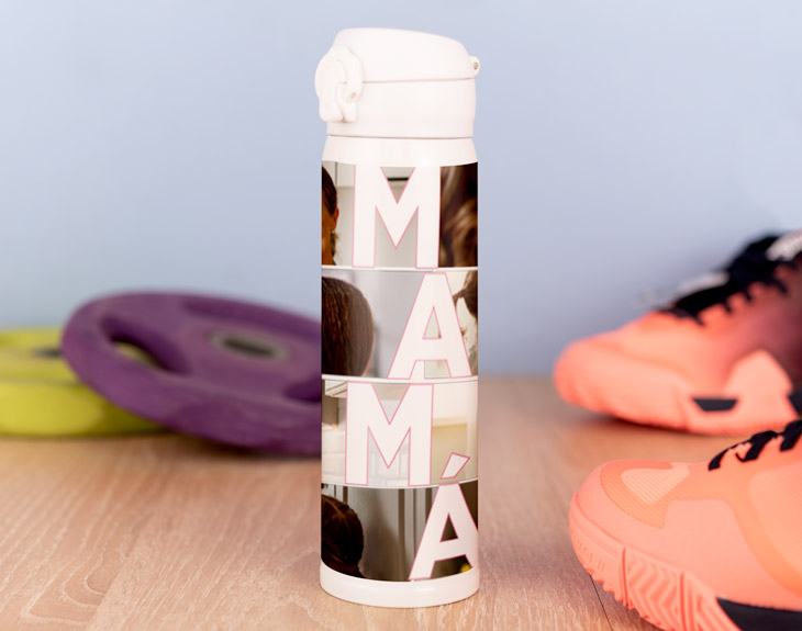 ¿Tu mamá es una auténtica aventurera? Si le encanta hacer rutas, viajar y exprimir cada día al máximo, este termo personalizado tiene su nombre. Así podrá llevarlo siempre encima y tomarse un descanso cada vez que lo necesite, además de hidratarse recordará lo especial que es para vosotros y le dará un chute de energía. Para personalizarlo, solamente tendrás que subir vuestras fotos favoritas al diseñador, esas que cada vez que las veis os llevan directos a los mejores momentos. Sabemos que es difícil escoger, pero merecerá la pena solo por ver su cara de emoción al descubrir este regalo original. Además, podrás cambiar la posición y tamaño de las imágenes para que ajuste perfectamente en el diseño. Sin duda, si hay alguien que se merece todo y más es tu madre, por eso, ha llegado el momento de darle una sorpresa con este detallazo. Ya sea por el Día de la Madre, por su cumpleaños o en cualquier otra fecha señalada ,¡todos los días son buenos para demostrar a tu mamá lo importante que es para ti! Altura de la botella: 22,5 cm. Diámetro de la base: 6 cm. Capacidad: 400 ml. Colores disponibles: negro, blanco y plateado. Material: Acero inoxidable.
