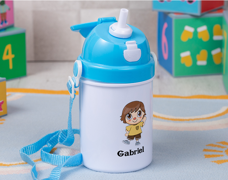 • Termo de plástico con boquilla. • Tarjeta recordatoria.