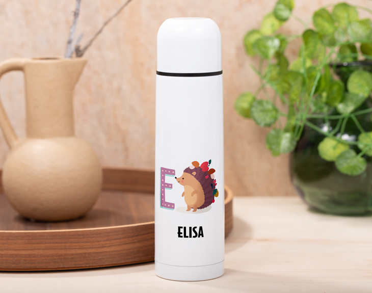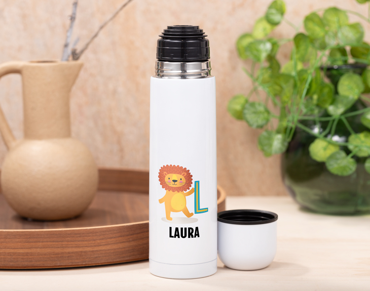 Hay personas que por trabajo o por ocio pasan el día entero fuera de casa. Pero a pesar de eso, siempre quieren tener su bebida favorita lista para tomar en cualquier momento. Por eso es indispensable tener tu propio termo con vasito personalizado para mantenerte hidratado todo el día y tomar siempre que quieras tu bebida favorita, ya sea fría o caliente. Es el mejor regalo que le puedes hacer a alguien que no para quieto en todo el día. ¡Cuando lo pruebes querrás tener uno para cada actividad del día! Además, este termo es ideal para utilizarlo todos los días de la semana o para cualquier aventura que pueda ocurrir de repente. Lo mejor es que utilizando este tipo de productos, conseguimos reducir el uso diario de plástico y contribuimos a cuidar el medio ambiente. Además, este termo es un regalo de lo más original y práctico porque aparte de conservar la temperatura de cualquier bebida, contiene un vasito para que puedas beber cómodamente estés donde estés. Y para que este regalo quede totalmente hecho a medida, tendrás que personalizar este termo como tú quieras. Podrás elegir la inicial que quieres que aparezca en el termo, cada una tendrá varias opciones de animales cuyo nombre empieza por la misma letra, para que elijas el que más te guste. ¡El regalo perfecto para la gente que siempre está ocupada! Material: aluminio Altura: 25 cm Capacidad: 450 ml