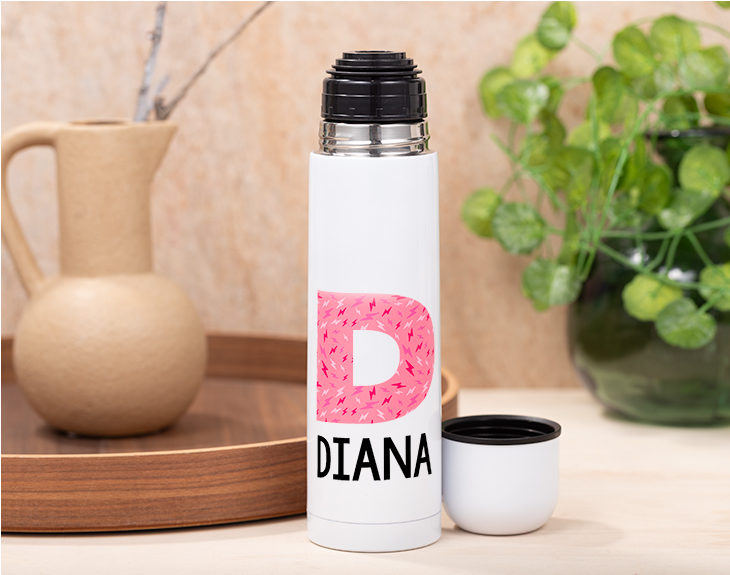 ¿Eres de esas personas que no paran en todo el día? Es importante que te mantengas bien hidratado para tener energía durante todo el día, por eso, nuestro termo con vasito "Alfabeto Rayitos" es ideal para que no te olvides de beber agua de vez en cuando. ¡Estará deseando lucir tu nuevo termo delante de todo el mundo! Este termo personalizado es perfecto para mantener la temperatura de las bebidas mucho más tiempo. Y la tapa puede funcionar como un vasito para que se pueda beber fácilmente. Aunque lo mejor de este termo es que es personalizable. Podrás escribir el nombre de esa persona tan especial y escoger una inicial de nuestro alfabeto rayitos. Es genial para que se mantenga bien hidratado en su día a día. Personalizar este termo con vasito es súper sencillo. El primer paso a seguir consiste en añadir el producto al carrito y entrar al área de personalización. Una vez ahí, ya puedes escribir el nombre que tú quieras y poner la inicial de nuestro Alfabeto Rayitos. Pronto estará perfecto y listo para regalar. ¡Será un original regalo! Material: aluminio Altura: 25 cm Capacidad: 450 ml