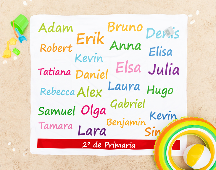 No hay regalo más sorprendente que una toalla personalizada con todos los nombres de los alumnos para que la mejor profe del mundo pueda disfrutar de la playa y del buen tiempo con mucha alegría. Si tú clase se ha puesto de acuerdo para hacerle un regalito a la profe, esta toalla es perfecta ahora que llega el verano. Con el nombre de todos los alumnos, y el curso de este año, podemos personalizar este regalo para darle una sorpresa enorme. ¿No crees que le encantará? Seguro que se muere de amor. Especificaciones: - Toalla microfibra individual: 160 x 80cm - Toalla algodón individual: 160 x 80cm - Toalla microfibra doble: 160 x 80cm - Toalla algodón doble: 160 x 145cm