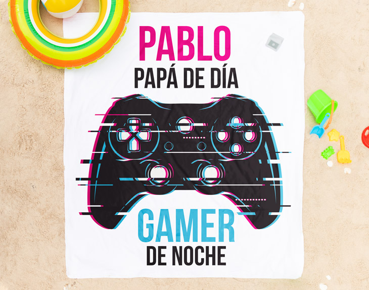 Los padres también tienen derecho a relajarse un poco de vez en cuando. Al fin y al cabo, se dedican todos los días a trabajar para mantener a su familia, y a cuidar a sus hijos para que se conviertan en los mejores personas posibles. Después de una dura jornada de incesante trabajo, estos hombres deben liberar tensiones de la mejor manera posible, ¿y por qué no con unas divertidas partidas a la Play? Ilusiona al padre más gamer del mundo con un regalo de lo más inesperado: esta toalla personalizada le convertirá en el papá más interesante y divertido de toda la playa. Con esta toalla, todo el mundo sabrá que tu padre es un fanático de los videojuegos, independientemente de si es más de PlayStation o Nintendo. Podrás elegir entre varias opciones a la hora de comprar este regalo original. Puedes escoger entre toallas individuales (de algodón y microfibra) y toallas dobles (únicamente de microfibra). Añade el nombre de ese papá tan molón y tendrás un detalle de lo más único. ¡Qué comience la partida! Material de la toalla algodón: 100% poliéster en la parte impresa y 100% algodón en la parte inferior.