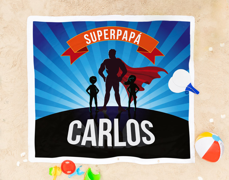 ¿Cuántas veces hemos visto a superhéroes en la gran pantalla? En muchísimas ocasiones hemos presenciado grandes escenas heroicas de la mano de algunos de los personajes más famosos del mundo del comic: Spider-Man, Batman, Capitán América, o Wonder Woman son algunos de estos superhéroes que nos han emocionado a lo largo de nuestra vida. Sin embargo, creemos que hay una persona que supera con creces a todos estos fantásticos personajes: tu padre. ¿Te gustaría decirle a papá que es el mejor héroe de todos los tiempos? Regálale esta toalla personalizada para que sepa lo fantástico padre que es incluso en pleno mes de agosto. Si quieres decirle a todos vuestros vecinos de playa que tienes al mejor héroe del universo en tu casa, no se nos ocurre un detalle más graciosos y agradecido. Creemos que este diseño es perfecto para todos esos superhéroes de a pie, que se dedican a salvar a sus hijos de todos los problemas que se van encontrando en sus vidas. ¿Quieres que este regalo original sea aún más especial? Dinos su nombre y este quedará de lujo en el diseño. Material de la toalla algodón: 100% poliéster en la parte impresa y 100% algodón en la parte inferior.