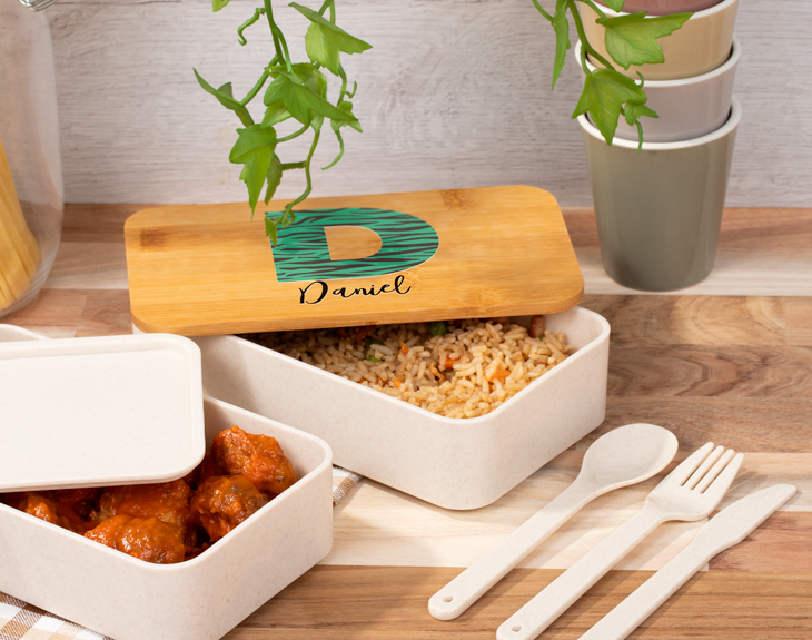 Si eres de esas personas a las que no les queda otra que comer en la oficina o en la universidad todos los días, necesitas este tupper bento personalizado para hacer que tus comidas sean mucho más divertidas. Saca tu lado más salvaje y hazte con esta lunchera en la que podrás poner tu inicial con el estampado animal que más te guste. Será una decisión difícil porque hay muchas opciones y todas son preciosas. Esta original tartera es ideal si quieres darte un caprichito y también si quieres sorprender a alguien especial con el mejor regalo del mundo. A cualquiera le gustaría tener una fiambrera tan guay como esta para todos los días. Hecha de plástico y bambú, incluye una cinta elástica para asegurar la tapa y que no se abra. Es el utensilio perfecto para llevar tu comida vayas donde vayas y ser el centro de todas las miradas. ¡Lo tiene todo! Lo mejor es que podrás elegir la opción que más te guste: la fiambrera individual de 1 litro de capacidad o el táper doble con dos recipientes de 700 mililitros, cubiertos y un separador de comida. Elige la lunchera que más te guste y se adapte a tus necesidades y personalízala como tú quieras. Personalizar esta caja para almuerzo es tan fácil que podrá hacerlo todo el mundo. Primero elige una de las dos opciones, añádela al carrito y entra en el área de personalización. Ahí, podrás elegir la inicial con tu estampado favorito de nuestra salvaje familia 'Animal Print' y después poner también el nombre para terminar este diseño. Nosotros nos encargamos del resto. ¡Solo tendrás que disfrutar de tu tupper todas las semanas! Apto para microondas y lavavajillas. Material: PP (polipropileno). Libre de BPA. Información del tupper individual: - Medidas: 20 x 14 x 7 cm. - Capacidad: 1 litro. - No incluye cubiertos. Información del tupper doble: - Medidas: 18 x 10,6 x 9 cm (dos tuppers) / 18 x 10,6 x 5 cm (un tupper) - Capacidad: 700 mililitros cada recipiente. - Incluye cubiertos (cuchara, tenedor y cuchillo) Medidas de los cubiertos: 15 cm.
