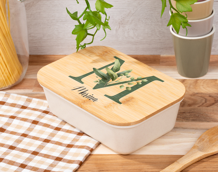 No hay nada que nos aporte más paz que el campo y es que es el lugar perfecto para hacer un picnic y relajarte disfrutando de tu comida favorita. Si eres fan de este tipo de plan y te encanta comer en este entorno, no te puede faltar este tupper bento personalizado. Es ideal para comer fuera de casa y llevarte esa comida que tanto te gusta. Estamos seguros de que esta lunchera se convertirá en tu complemento favorito cada vez que tengas que comer fuera de casa, sea donde sea. ¡Es ideal! Date un capricho y hazte con nuestra original tartera para disfrutar de esas comidas fuera de casa de la mejor manera posible. Hecha de plástico y bambú, esta fiambrera de color beige y su tapa de madera es perfecta para transportar tu comida donde quieras. Además, incluye una cinta elástica para sujetar la tapa y evitar que se abra y se salga el contenido. ¡Lo tiene todo! Lo mejor es que podrás elegir la opción que más te guste: la fiambrera individual de 1 litro de capacidad o el táper doble con dos recipientes de 700 mililitros, cubiertos y un separador de comida. Elige la lunchera que más te guste y se adapte a tus necesidades y personalízala como tú quieras. Si ya estás pensando en cómo personalizar esta caja para almuerzo, no te preocupes porque es muy fácil. Primero elige una de las dos opciones, añádela al carrito y entra en el área de personalización. Elige qué inicial te gusta más entre nuestros diseños llenos de flores y plantas y después escribe tu nombre. Nosotros nos encargamos del resto. ¡Tendrás el mejor tupper del mundo para todos tus picnic! Apto para microondas y lavavajillas. Material: PP (polipropileno). Libre de BPA. Información del tupper individual: - Medidas: 20 x 14 x 7 cm. - Capacidad: 1 litro. - No incluye cubiertos. Información del tupper doble: - Medidas: 18 x 10,6 x 9 cm (dos tuppers) / 18 x 10,6 x 5 cm (un tupper) - Capacidad: 700 mililitros cada recipiente. - Incluye cubiertos (cuchara, tenedor y cuchillo) Medidas de los cubiertos: 15 cm.